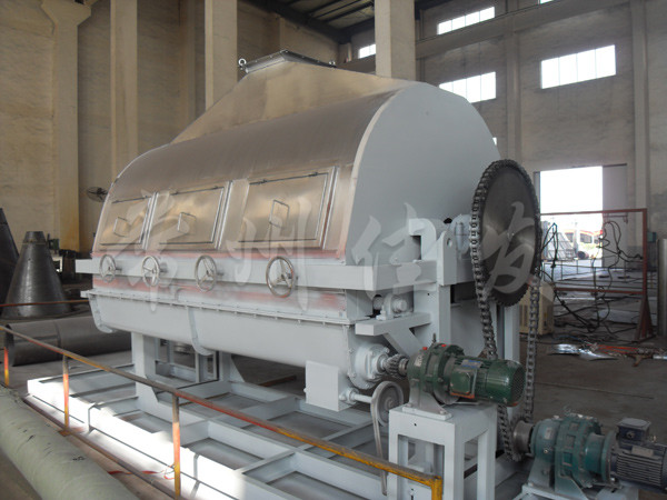 利用刮刀把產(chǎn)品刮下來(lái),露出滾筒表面再次與原料接觸形成薄膜進(jìn)行干燥。